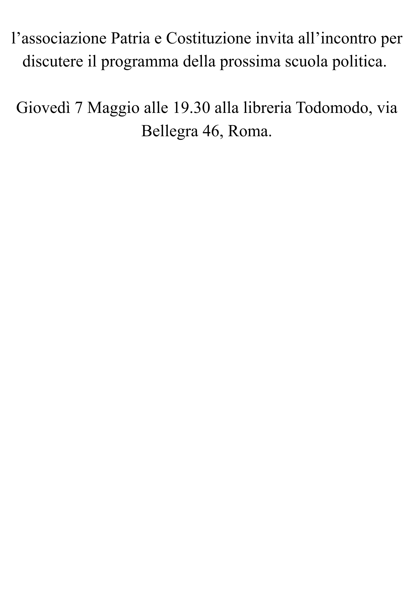 ” Torna la terza edizione della scuola di formazione politica promossa da Patria e Costituzione”