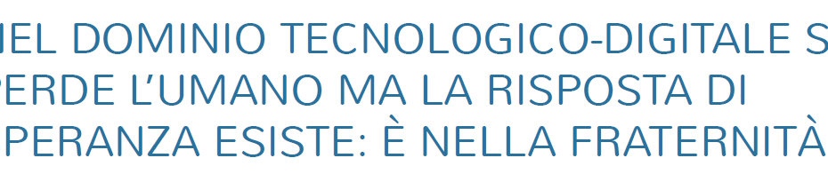 “Nel Dominio tecnologico-digitale si perde l’umano ma la risposta di speranza esiste: è nella Fraternità”, intervento di Stefano Fassina sull’Avvenire del 21 aprile 2026.